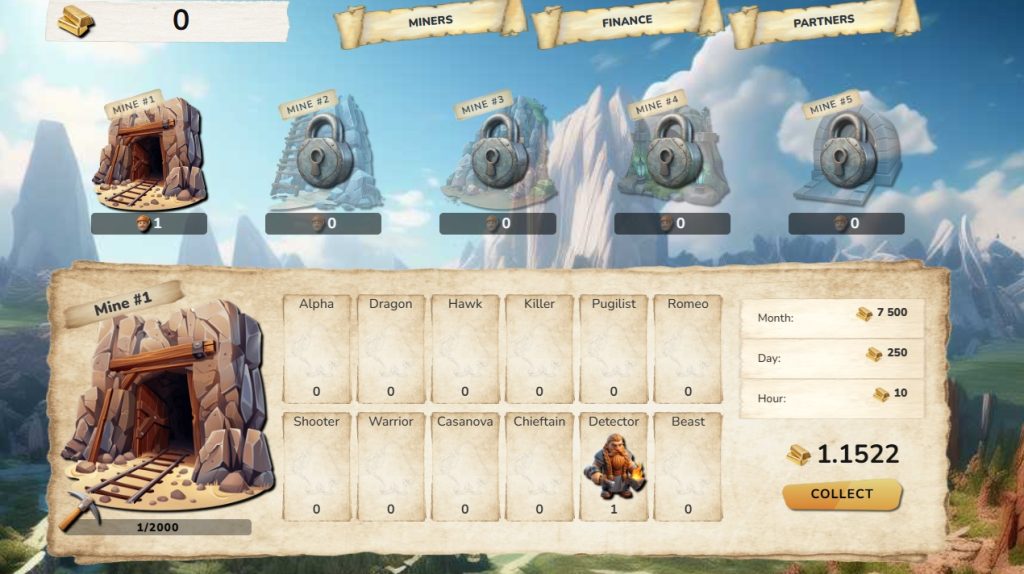 New accounts are rewarded with 1000 Gold Welcome Bonus which can be spent to purchase dynamites and miners to start mining.